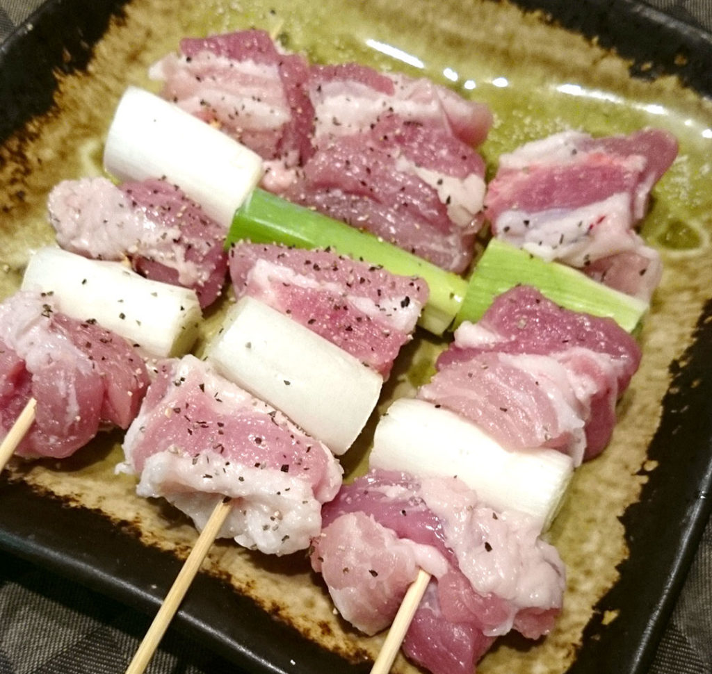 あとは焼くだけ!!ねぎ間豚串の完成!!(1つ目の写真)